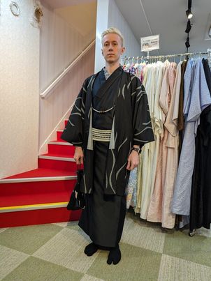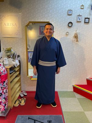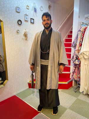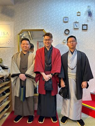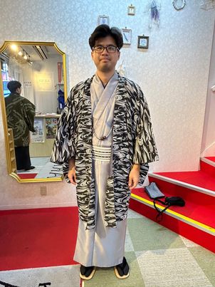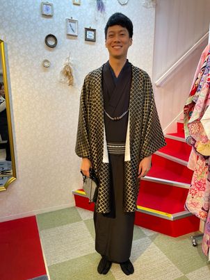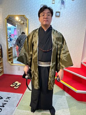 すっきりとしたシルエットや控えめな色合いは、歩く姿をより凛々しく見せてくれます。浅草の街並みを着物で散策すれば、歴史ある風景と自然に溶け込み、普段とは違う特別な時間に。ぜひ男性にも着物を身にまとい、ゆったりと街歩きを楽しんでいただきたいです。