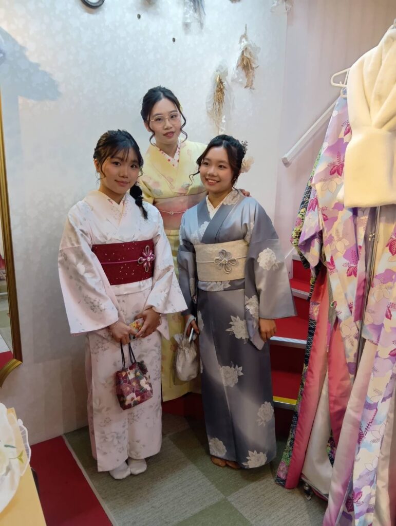 満開の桜並木を背景に、風に揺れる袖や優雅な柄ゆきが映え、その一瞬一瞬が絵画のような情緒を感じさせます。伝統的な和の装いに、現代的な可愛らしさをプラスした着こなしは、まさに春を象徴する特別な風景。皆さんの眩しい笑顔が、桜の美しさをより一層引き立てる素敵な思い出のアルバムになりました。