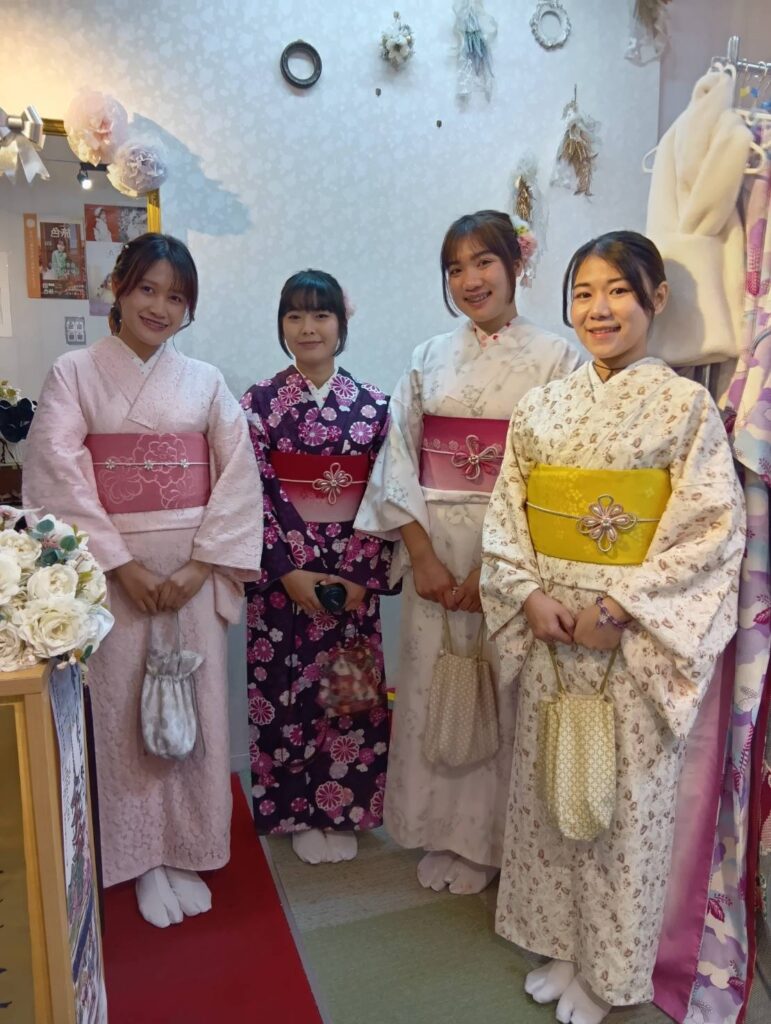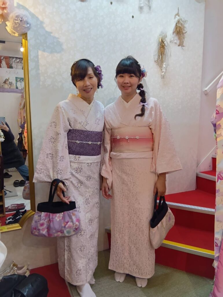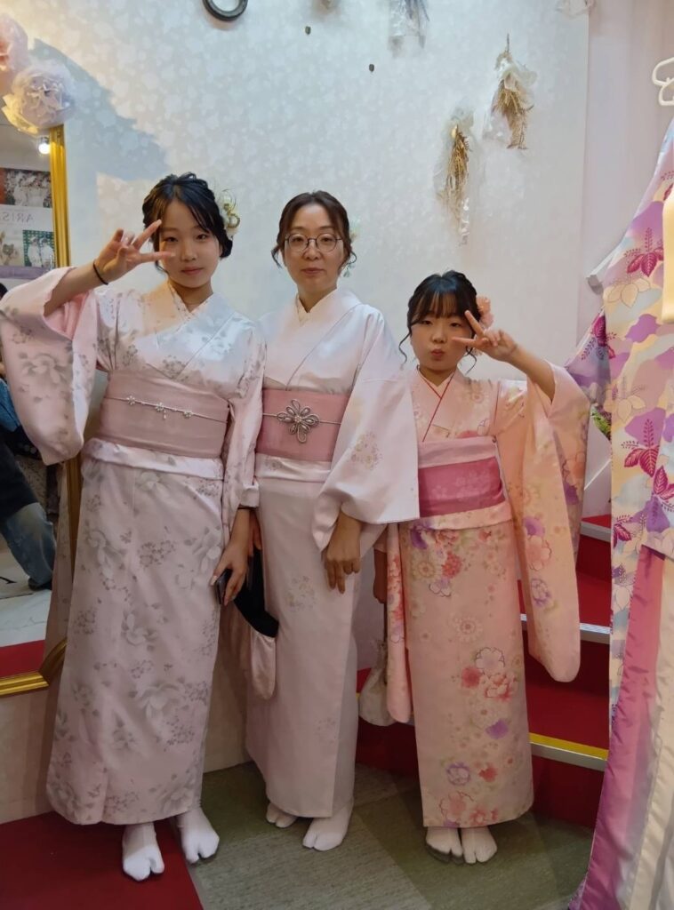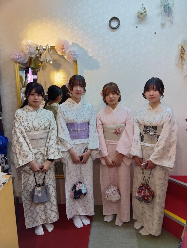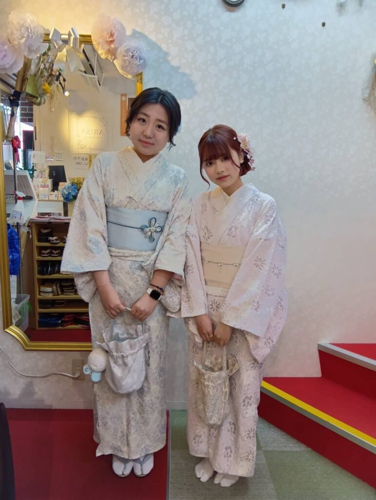 淡いピンク色の桜が街を彩る3月。この美しい季節に、Arisaでピンク色の和服を纏った皆さんの姿は、まるで春の陽だまりのように温かく、可憐な魅力に溢れていました。